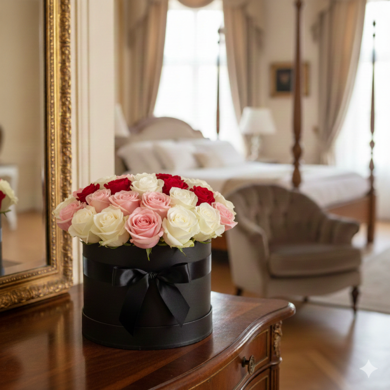 Moonlight Mix Roses Hat Box